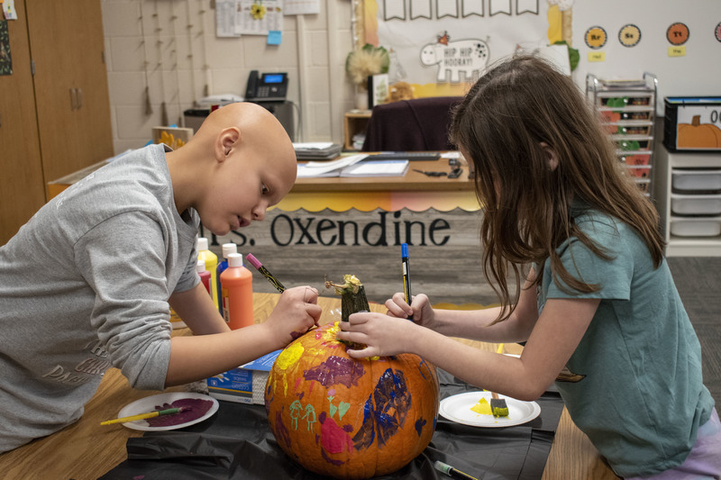 You could feel a shared sense of belonging as the discussion unfolded, and the students, two-by-two, took their ideas from the discussion around the classroom reading carpet and painted their wonderful expressions of family onto their classroom family’s pumpkin. As students were wrapping up their pumpkin designs, we asked Mrs. Oxendine what having this school family meant to her as an educator. She stated, “The leaders in my family are empowered to help lead these lessons. They help reinforce expectations and without hesitation, our younger students follow intently. It’s wonderful to me because I get to connect with students longer than just the one year I may have them in my classroom. I get to support them on their journey all the way through CDS. I feel connected to them. It really expands my relationships from just my classroom family into the whole school family of CDS. "