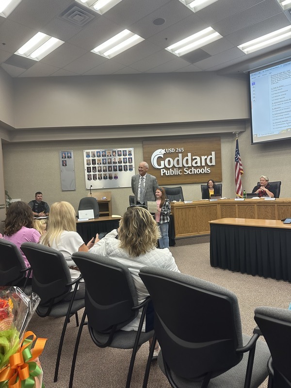 Melanie Highfill, a 4th Grade student at Oak Street Elementary School was recognized with the District Attitude Award by Goddard Superintendent, Dr. Henry and the Goddard School Board at last evening's meeting.